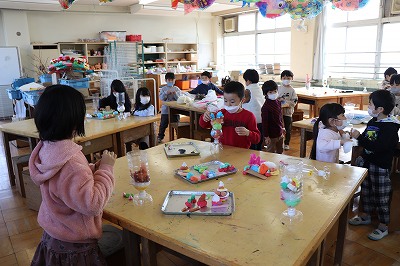 『フルーツパフェ』思い思いに美味しいフルーツを盛り付けていきます。