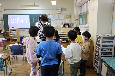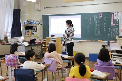 「しを よもう」様子が伝わる音読の仕方を学習しました。ポイントは? 子どもたちから「読む速さ」「声の大きさ」「気持ちをこめて」などが出てきました。最後に、グループで、学習したことをもとに音読練習しました。