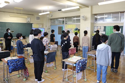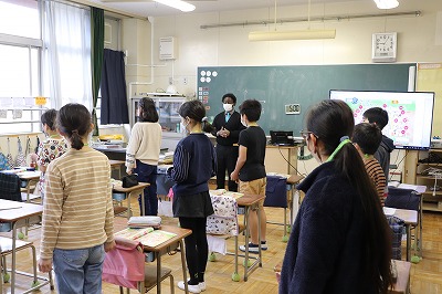 ALTの先生との活動です。先生の英語に合わせて「動き」ます。「ターン レフト」など。