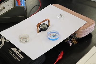 コイルのまわりの磁界について実験で調べています。