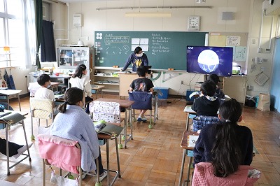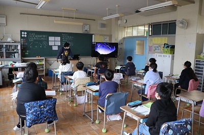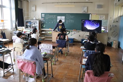 『冬の夜空』動画を視聴しながら、オリオン座の観察結果を確認し、冬の星座の動き方を確かめています。