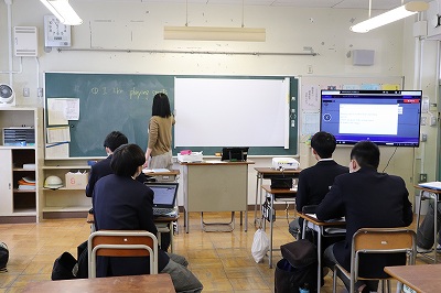 2つのクラスに分かれて「英語の歌」「「クロムブックを使って英作文」の学習をしています。