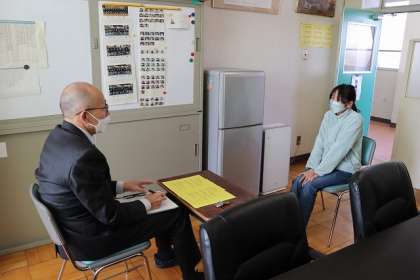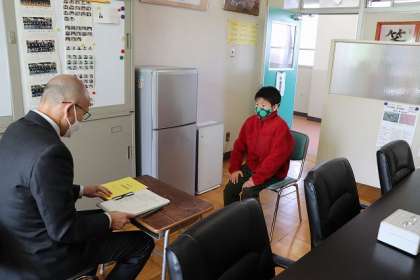 中学に向けての企画です。やや緊張気味の様子ですが、きちんと応じた返事をしていて立派です。