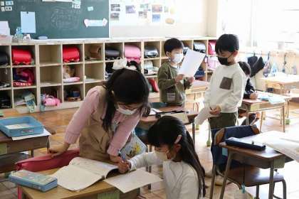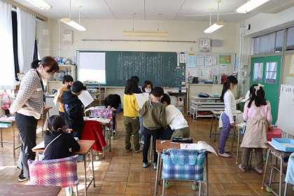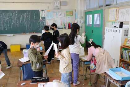 C-(14)よりよい学校生活、集団生活の充実(資料「三くみ 大すき」)自分の考えを交流しています。