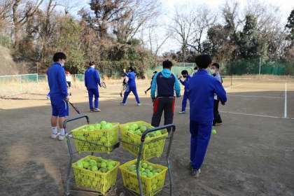 分校舎での活動体験です。ラケットの使い方、ボールの扱い方を教えてもらい、最後は相手のコートに打ち返しました。
