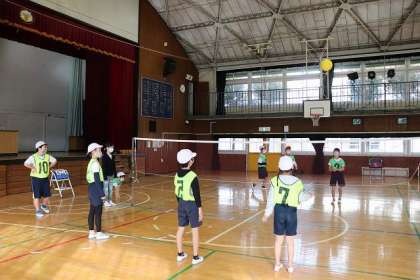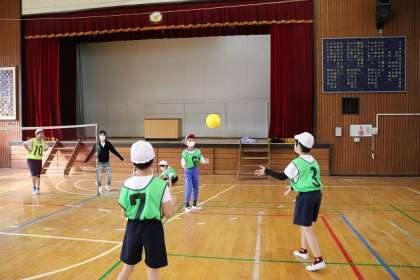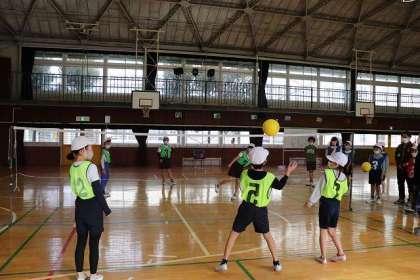 全員で「キャッチバレー」のやり方を確認しています。