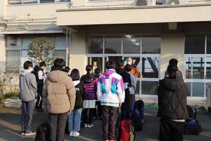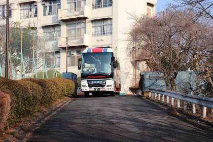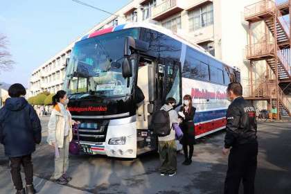 「スキー教室」の当日です。8時15分出発です。「いってらっしゃい!」