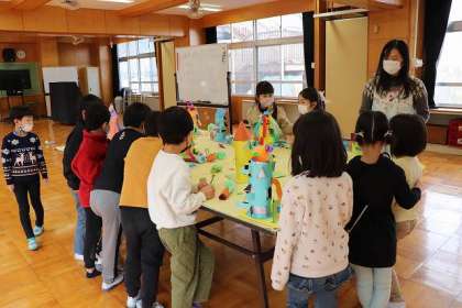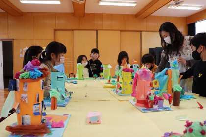 『てんらんかいにむけて』自分たちの作品を展示するための『まち』を作っています。