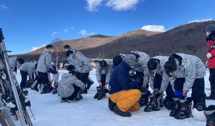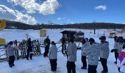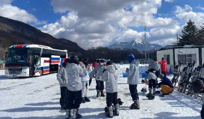 ゲレンデにつきました。3日間お世話になるインストラクターの方々にご挨拶。