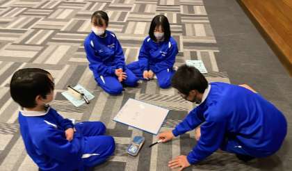 先生チームも加わって4チーム対抗戦でスキークイズや相性ゲームで盛り上がりました。みんなの仲がより深まった時間となりました。
