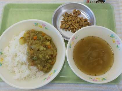 今日の献立:サブジ丼、オニオンスープ、豆ナッツ黒糖