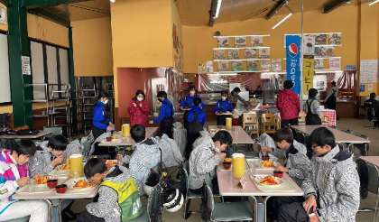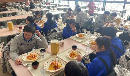 午前中のレッスンを終えてレストランに戻ってきました。お昼は食べ応えのある、大オムライス。