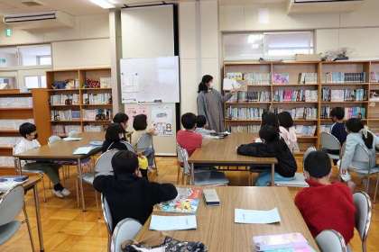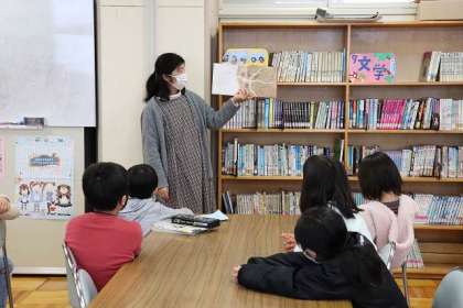 学校司書の先生による「本の読み聞かせ」です。楽しみな時間です。