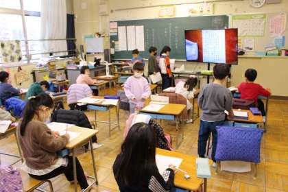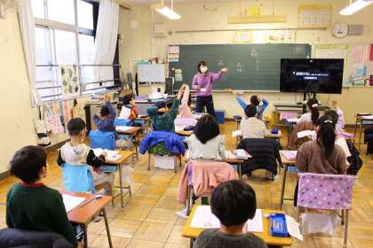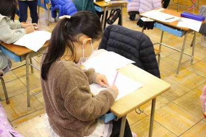 漢字の「森」の練習のあと、「みぶりで つたえる」の学習をしました。