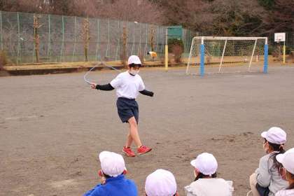 なわとびの時間です。続けて跳んでいるのは? 次は、お手本の跳び方を見てみましょう!