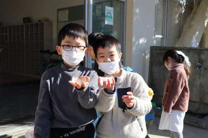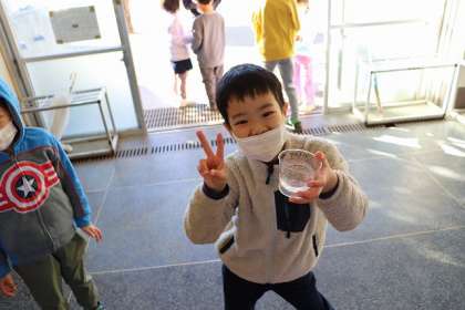 昨日水をはった器に「氷」ができました。「見て!見て!写真撮って!」