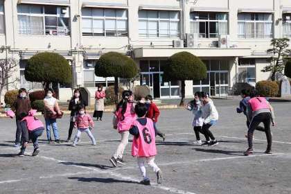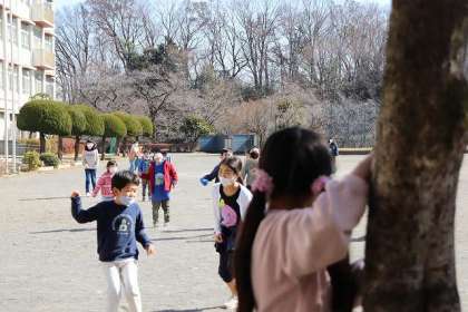 5年生が中心となって、各班の活動がスタートしました。1班は「十字おに・だるまさんの一日」を楽しみました。