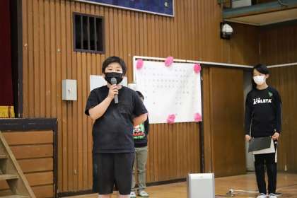6年生と一緒に「もうじゅうがりゲーム」を楽しみました。いよいよ終わりの言葉です。とてもすてきな送る会となりました。ありがとうございました。