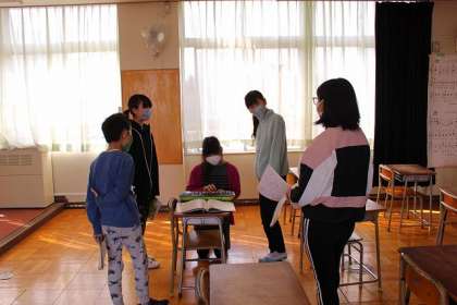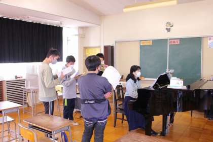 パートに分かれて、卒業式でうたう歌の練習をしています。