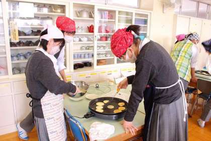 焼きはじめました。ホットケーキかな? 楽しそうです!