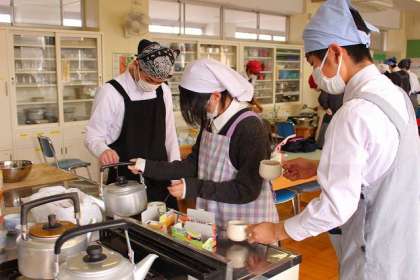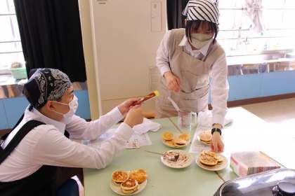 『ミニどら焼き』のようです。飲み物も用意しています。