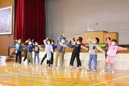 入学式前の歓迎アトラクション(小学部2年生)の練習です。