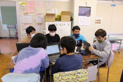 「森林とともに生きる」の学習です。それぞれのグループに分かれて調べ学習を進めています。