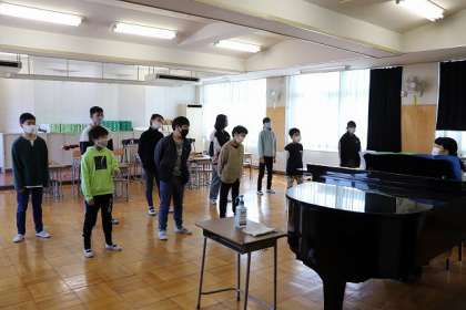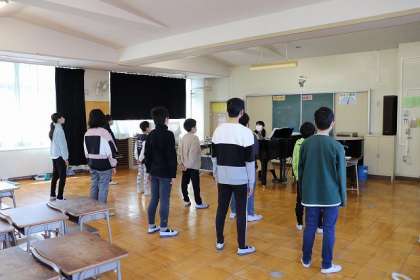 卒業式の歌の練習のスタートです。声出しの場面です。