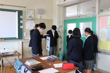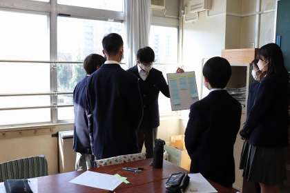 2つのグループに分かれて、クラスの活動の振り返りをしています。