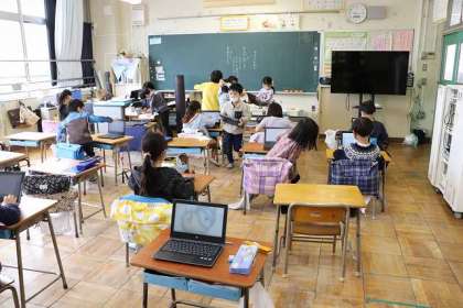 テストの振り返りのあと、クロムブックを使って「ミライシード」を学習していきます。「ミライシード大好きだな!」との声が・・