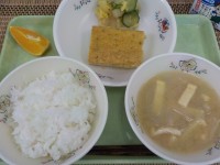 今日の献立※ ごはん※ 擬製豆腐※ 浅漬け※ さつま芋のみそ汁※ 果物※ 牛乳主...