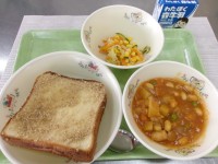 🍚9月25日のごはん🍚・セサミトースト・チキンビーンズ・フレンチサラダ今日の写真...