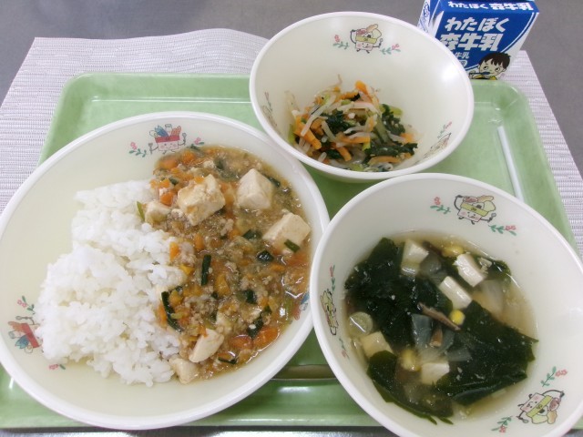 にらなどの野菜もたっぷり入ったマーボー豆腐です。