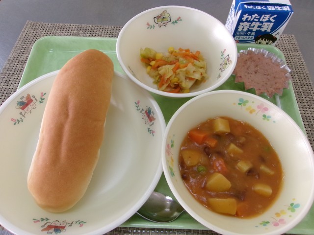 今日の給食では、北海道産の小麦を使ったパンを食べます。