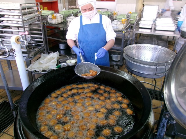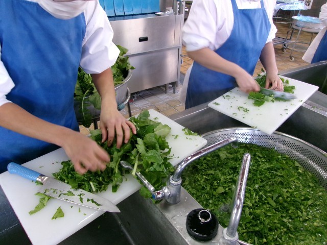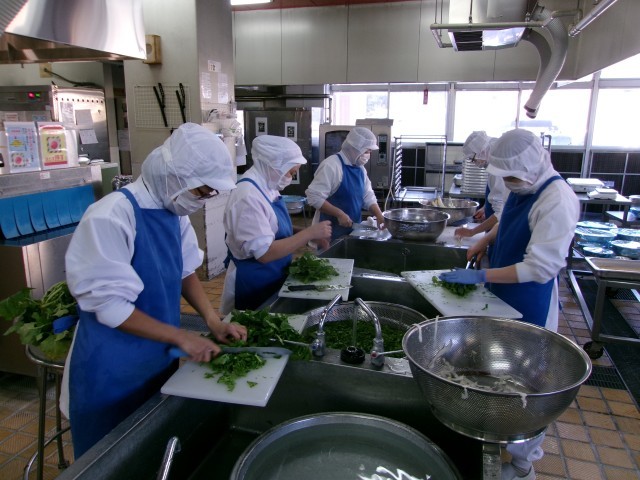 その日の給食で調理しています。