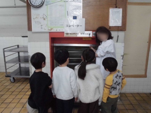 1年生が、2学期の最終日、特別に給食室を探検しました。いつもは入れない場所を見学し、大きなお鍋や調理器具に目を輝かせていました。