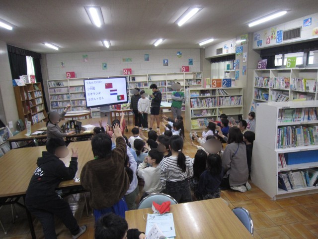 図書委員会の児童は、はきはきとした声で上手に読み聞かせをしてくれました。最後にはクイズもあり、物語の内容を思い出しながら元気よく手を挙げる姿が見られました。特に低学年の児童を中心に多くの子供たちが集まり、図書室は笑顔でいっぱいになりました。