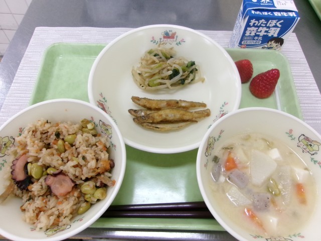 今日の給食では、【わかさぎの香り揚げ】を食べます!