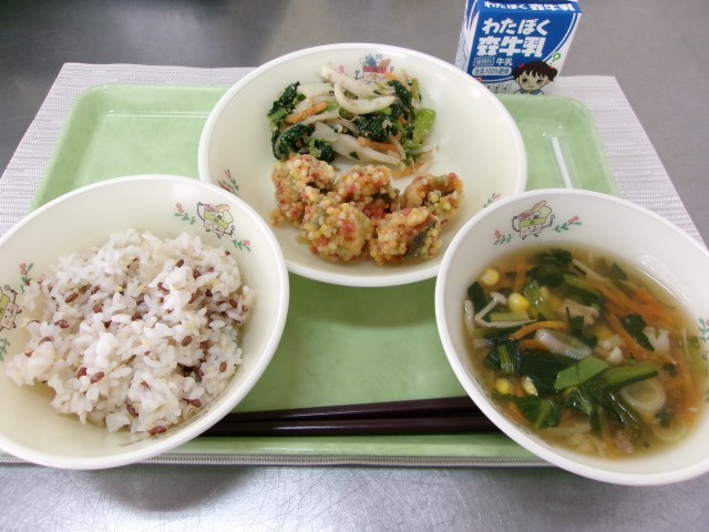 給食では、当時のごはんをイメージして、