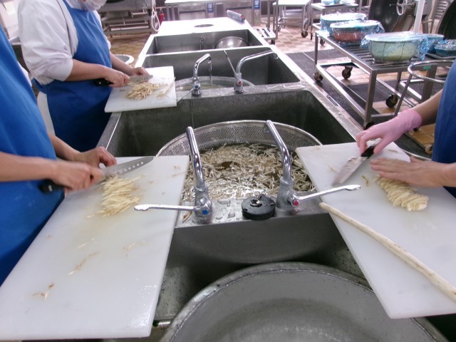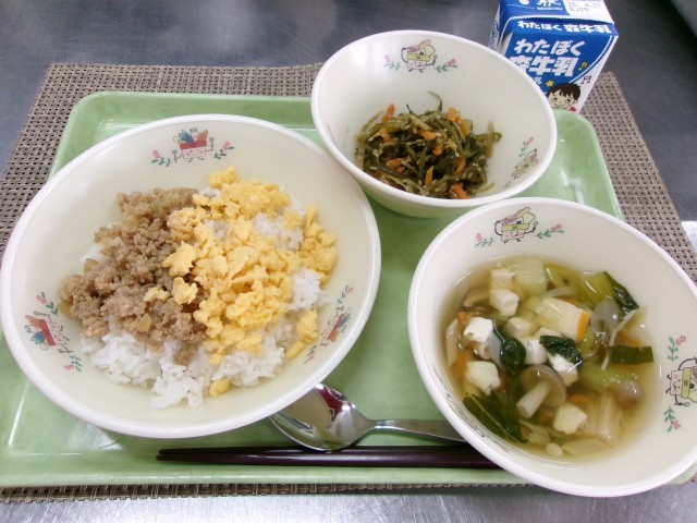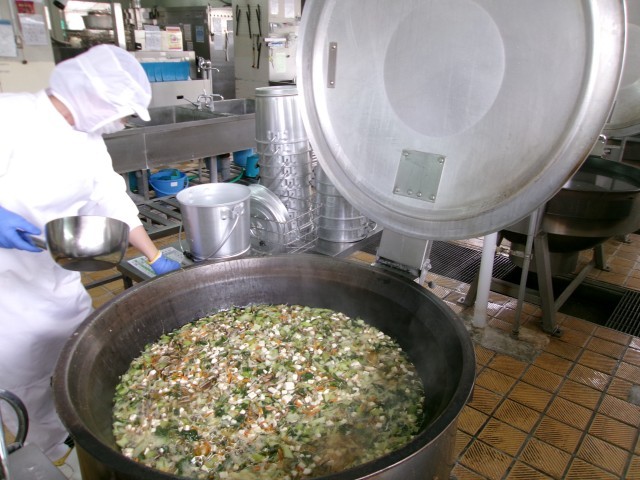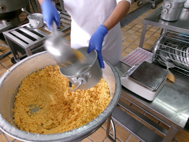 3枚目:『二色丼』の炒りたまごを配缶しているところ