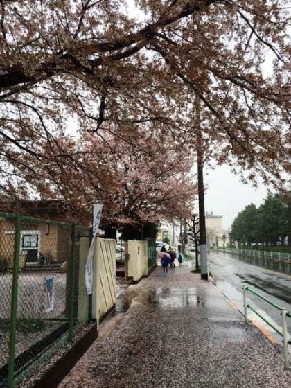 雪が降る寒い朝でしたが、子供たちは元気に登校してきました。門のところに立っている先生や保護者の方とも、「おはようございます!」と元気にあいさつを交わしていました。足元を見ると、桜の花びらがじゅうたんのようになっています。もうすぐ散ってしまうのでしょうか。でも、その後の葉桜もなかなか素敵なんですよね。