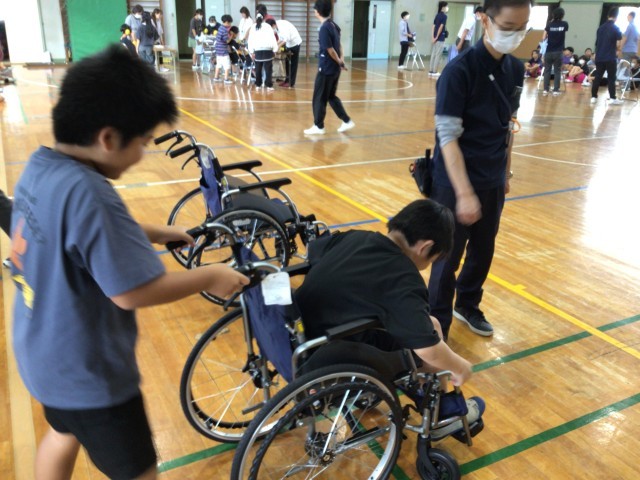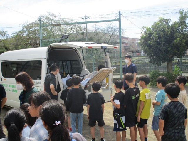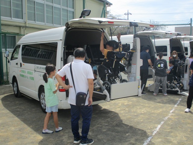 車いす・福祉車両の体験では、車いすのおし方や段差のこえ方、乗っている人に負担をかけない押し方についてレクチャーを受けながら体験できました。福祉車両では実際に車いすやストレッチャーに乗り、ボタンを操作してリフトを乗降させるなどの体験ができました。どれも子供たちにとって貴重な体験となりました。