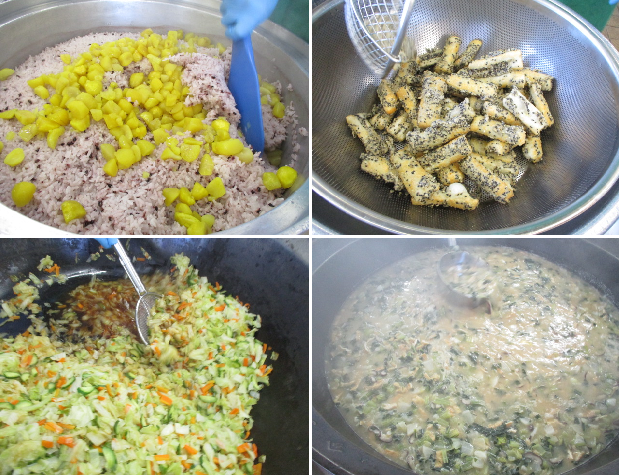 小松菜、長ねぎ、根しょうが、さつま芋、しいたけ