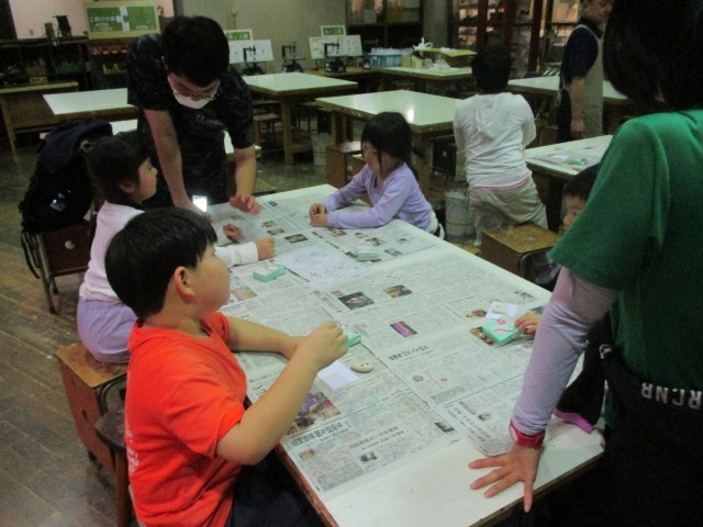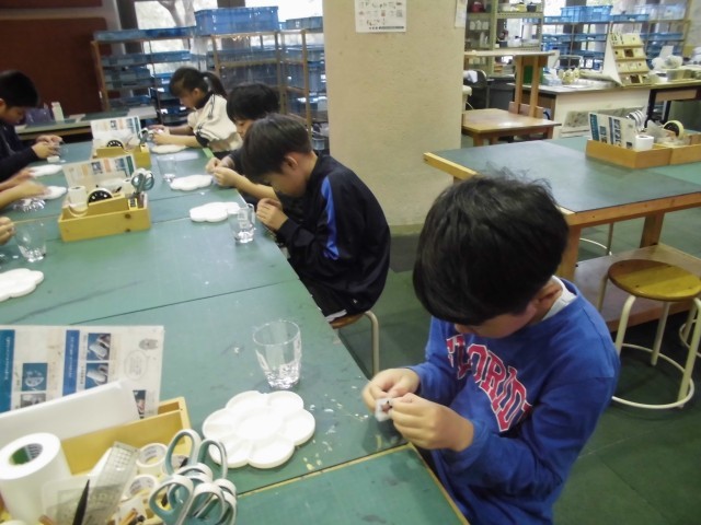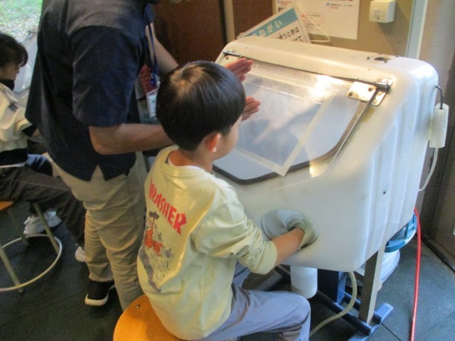 1日目は、芸術の家の工房体験で、「オカリナの絵付け」やガラスのコップやお皿などに砂を吹き付けて模様をつける「サンドブラスト」の体験を行いました。
