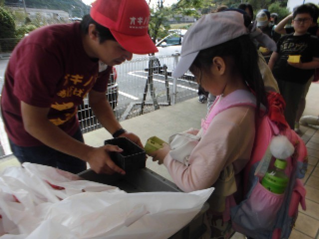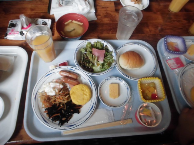 朝食のバイキングでは、普段の給食の配膳のようにならび、自分たちで食べたいものを選びました。楽しみにしていた子ども達も多く、普段の給食の時間よりもたくさん食べている(?)子たちもいました。