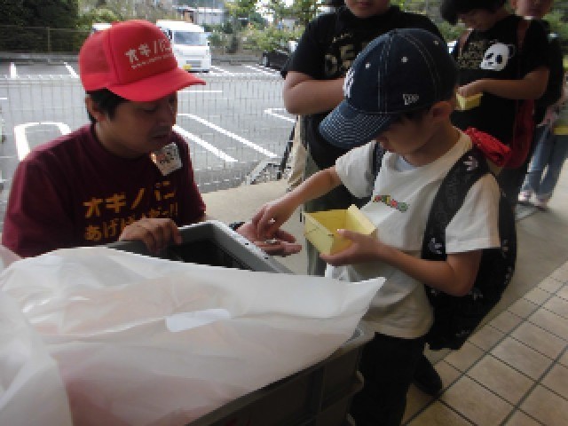 昼食は「オギノパン」へ行き、店頭で特設コーナーを作っていただいて、一人一人、自分たちで買い物体験をしました。お金を落とさないように、慎重に一枚一枚硬貨を渡す子もおり、ほほえましく感じると共に、子どもたちの真剣さも伝わってきました。