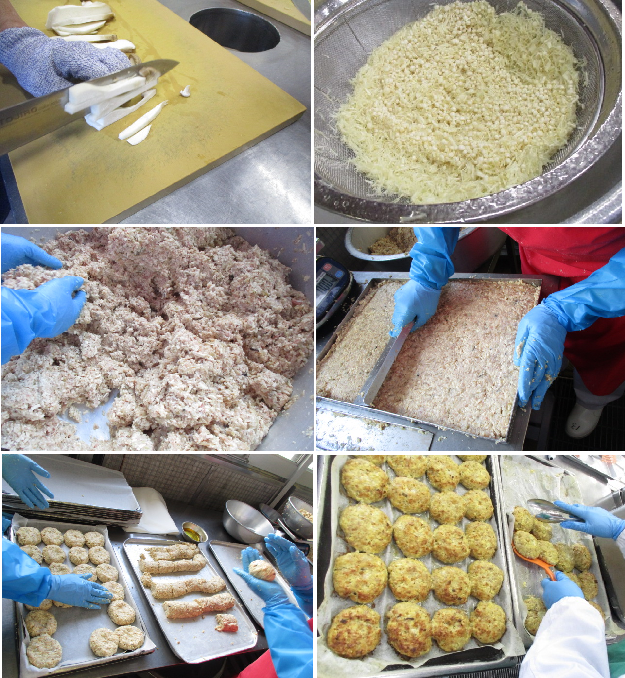 ★今日のきのこハンバーグには、エリンギとえのき茸を入れました。きのこのうま味がプラスされ、おいしいハンバーグができました。