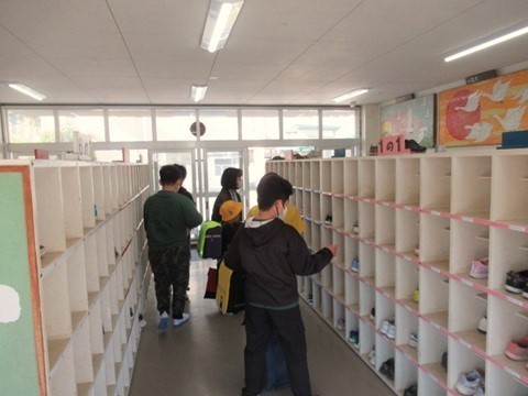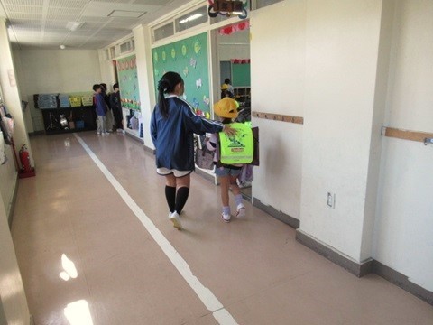 朝は6年生がお出迎えをして、準備について、ていねいに教えてくれています。