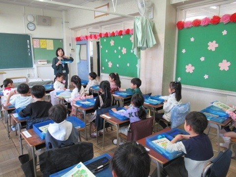 1年生が、学校での過ごし方を一つ一つ学んでいます。