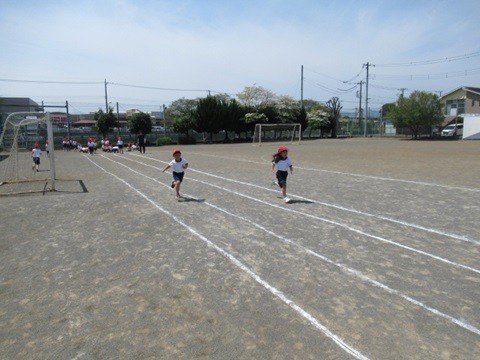 6年生はさすがの走りですが、1年生も、がんばって「まっすぐ」走っています。
